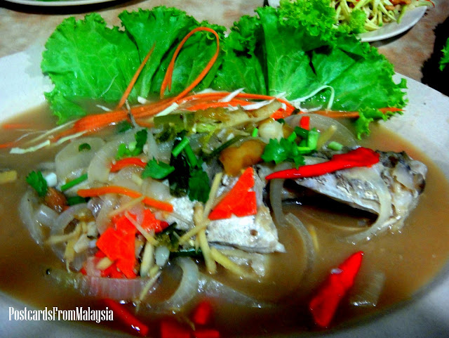 Oooppss..food entry again?....This time around I'll take you to a restaurant in KT pulak. My next door neighbour, Chef Muhammad Ridzuan Ang and his wife had just opened a new restaurant. His new restaurant, The Pilgrim Restaurant and Grill which serves Malay, Chinese and Eurasian cuisine is at Desa Sri Bayas Permai, Bukit Bayas, Kuala Terengganu(kat area Pasir Panjang). Pilgrim restaurant is actually their second restaurant. Their first restaurant, Al Hijrah Oasis which serves Malay and Halal Chinese food is quite popular here in KT and gives them a 5 figure income monthly. The first restaurant nampak simple je, kampung style, takde aircond ke apa.. tapi is always packed with people especially during the school holidays and hari gaji. Their second restaurant, The Pilgrim R&G was only opened a week ago. The restaurant is a two storey building (warna kuning) in Desa Sri Bayas Permai. Restoran baru ni ada air -cond and the staffs pakai uniform gitu..